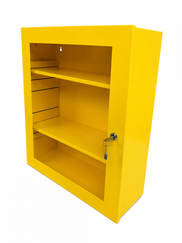 Промышленная блокировочная станция PKB157, предназначена для хранения оборудования LOTO, с 2мя регулируемыми по высоте полками. Створка двери с прозрачной вставкой, предусмотрена петля для закрытия шкафа на навесной замок. Крепится станция на стену, 4 отверстия для крепления находятся на задней стенке. Под заказ, возможно нанесение названия компании и логотипа. Станции изготовлены из стали толщиной 1 мм, окрашенной порошковой краской. Станция может закрываться на навесной замок (предусмотрены ушки), либо на почтовый ключ.