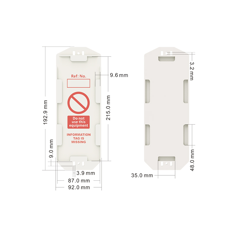 Держатель для бирки лесов BD-P34, размер 193 х 92 х 6 мм, сделан из ABS пластика. Продается в комплекте с вставкой на англ.яз., двусторонняя зеленая/желтая. Под заказ клиента, вставка в бирку может быть изготовлена русифицированная, с логотипом и наименованием компании, размер 210х85х0,3 мм. Материал изготовления вставки: ламинированный пластик, 0,3 мм толщиной. Продается как отдельно, так и в комплекте с вставкой в бирку.